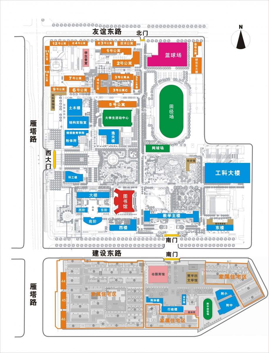 陕西省西安建筑科技大学校园地图: