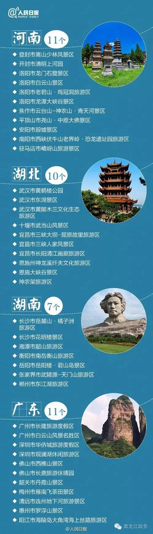 看到这里一共有多少个5A景区呢?图表上一共是212个!截止到2015年10月,国家旅游局共确认213个5A级国家景区,其中的变化就是湖北的宜昌市三峡大坝-屈原故里旅游区由一个分为2个,即:宜昌市三峡大坝景区和屈原故里景区。
