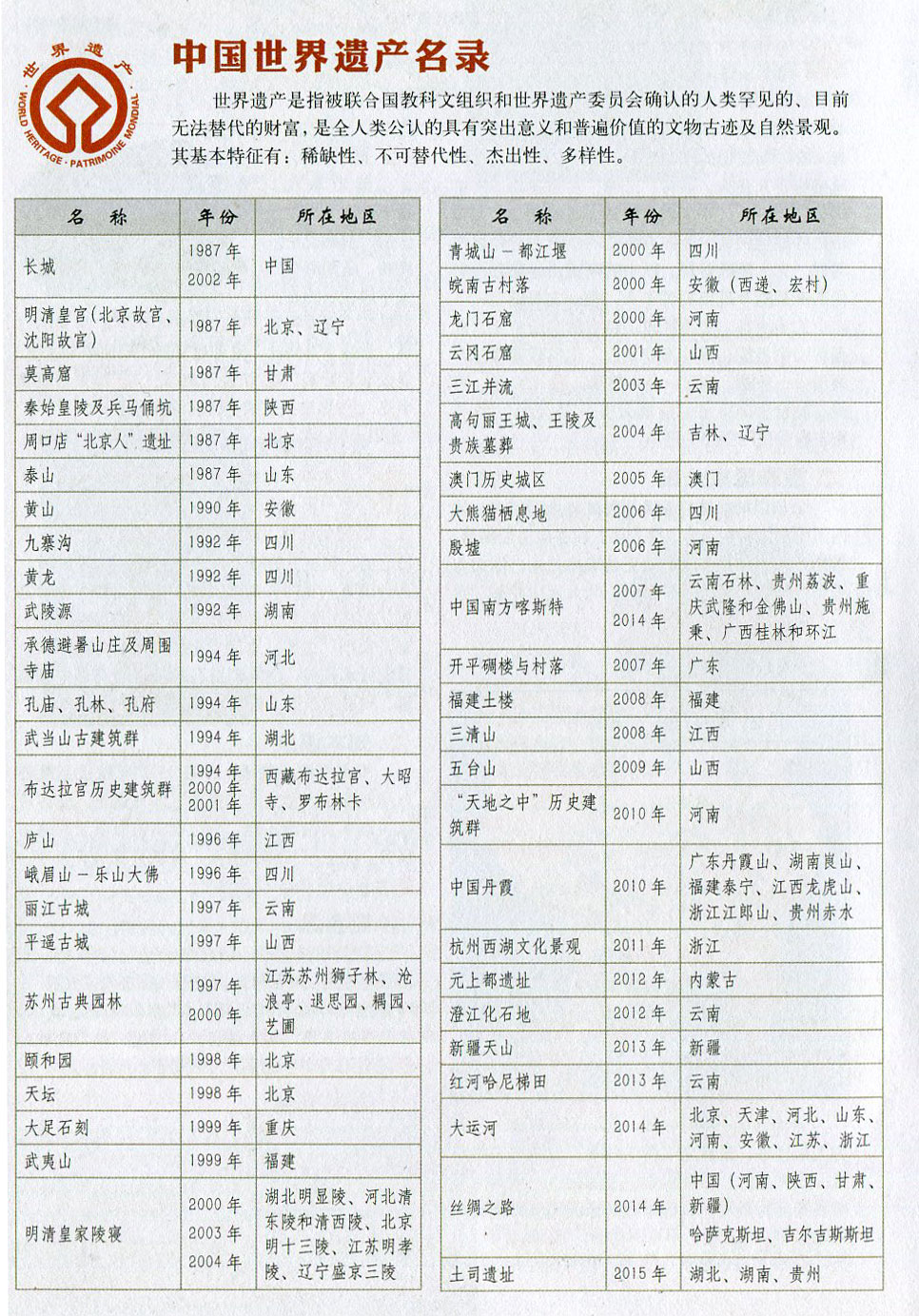 >> 中国世界遗产名录