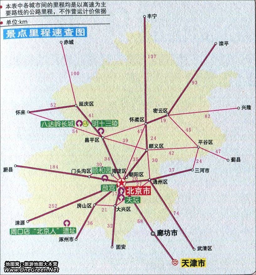 北京景点里程速查图