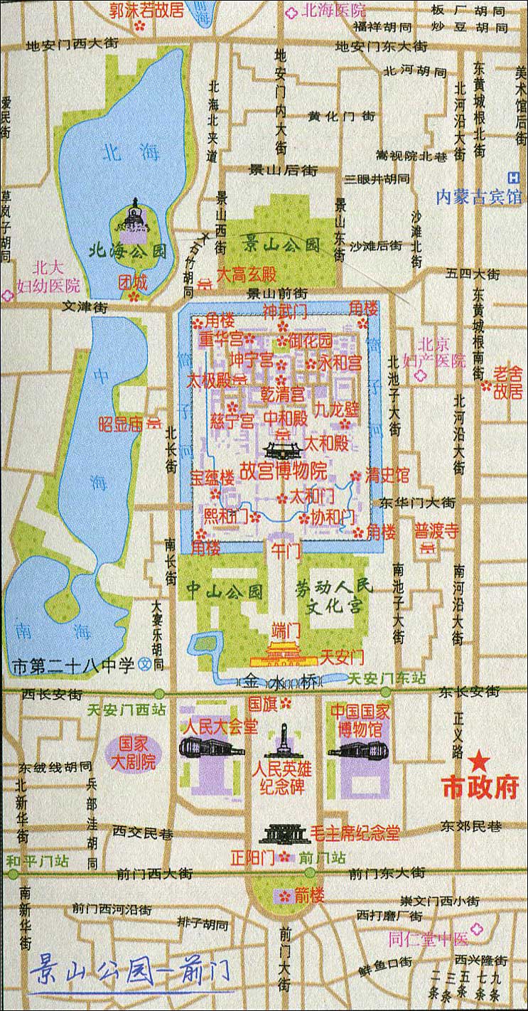 北京景山公园导游地图: