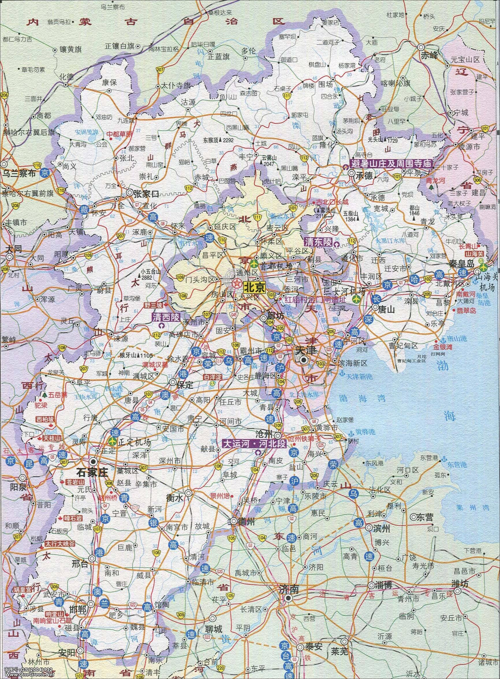 河北省旅游景点交通地图