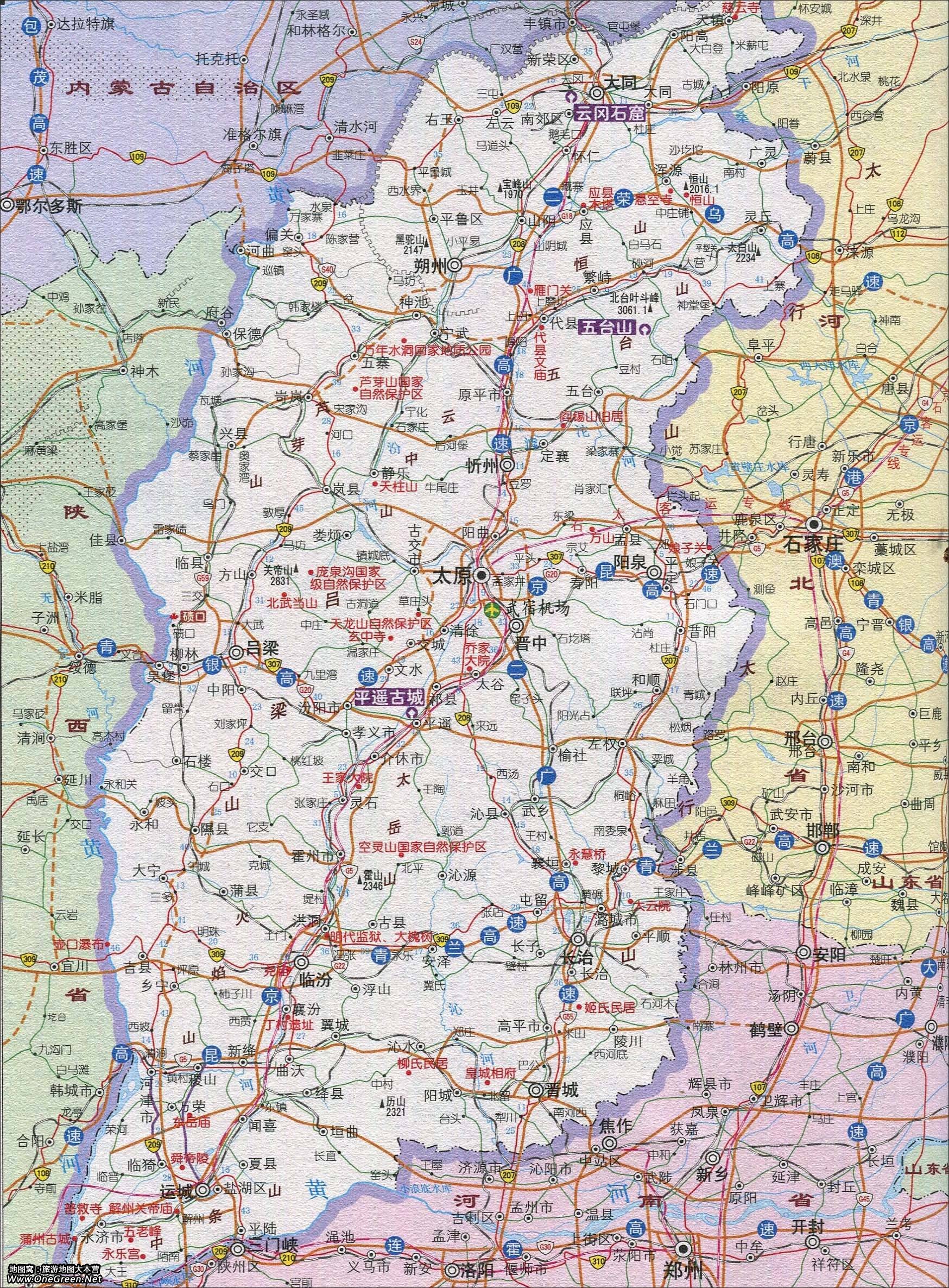 >> 山西省旅游景点交通地图