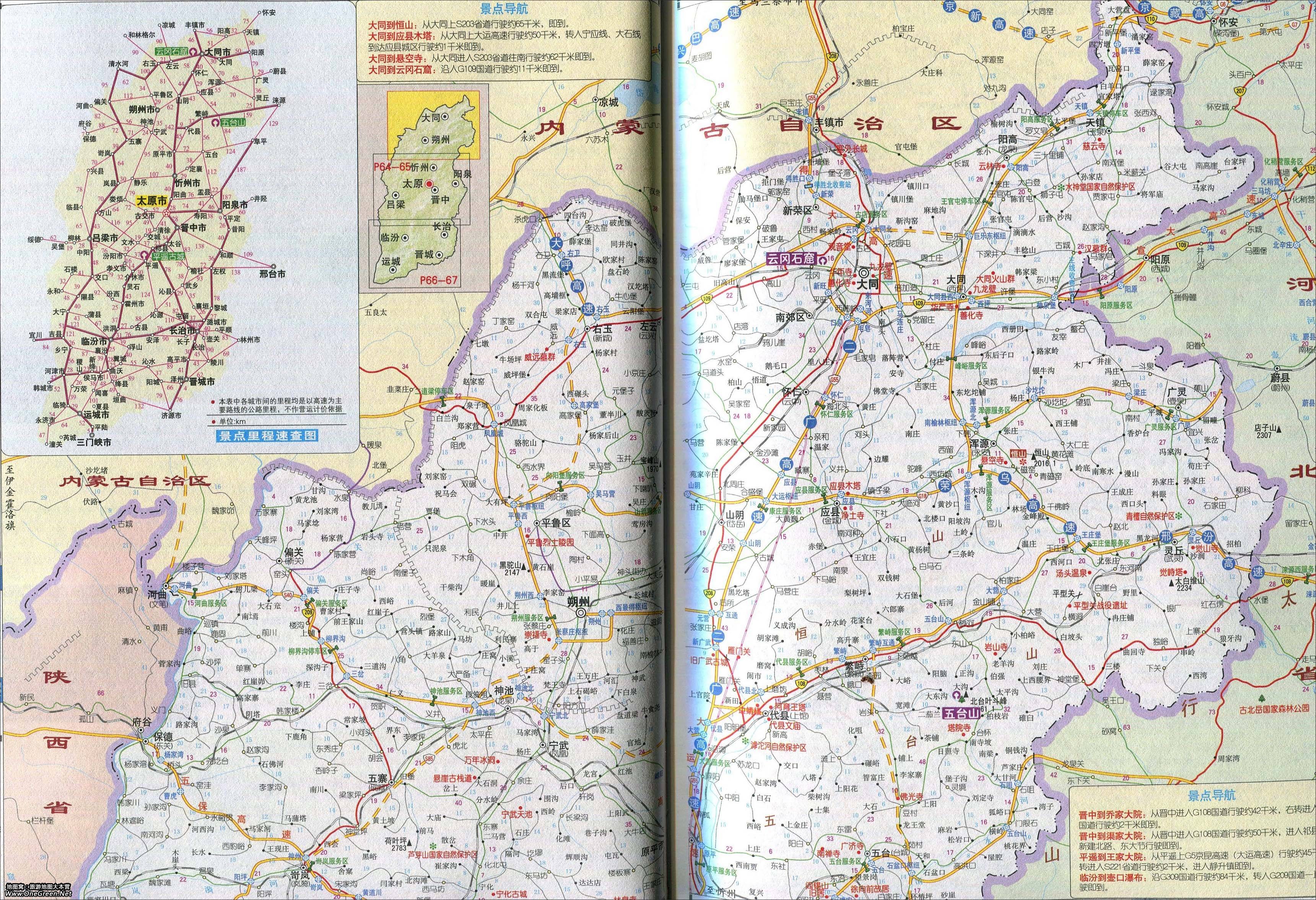 山西省旅游景点交通地图