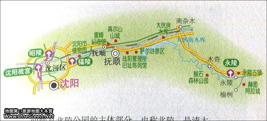 沈阳故宫至永陵古镇旅游路线图
