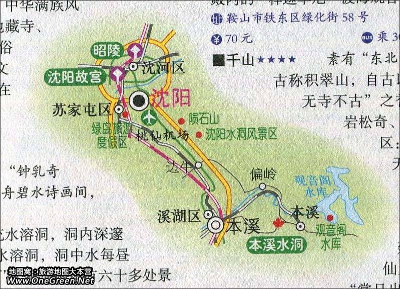 沈阳至本溪水洞旅游路线图