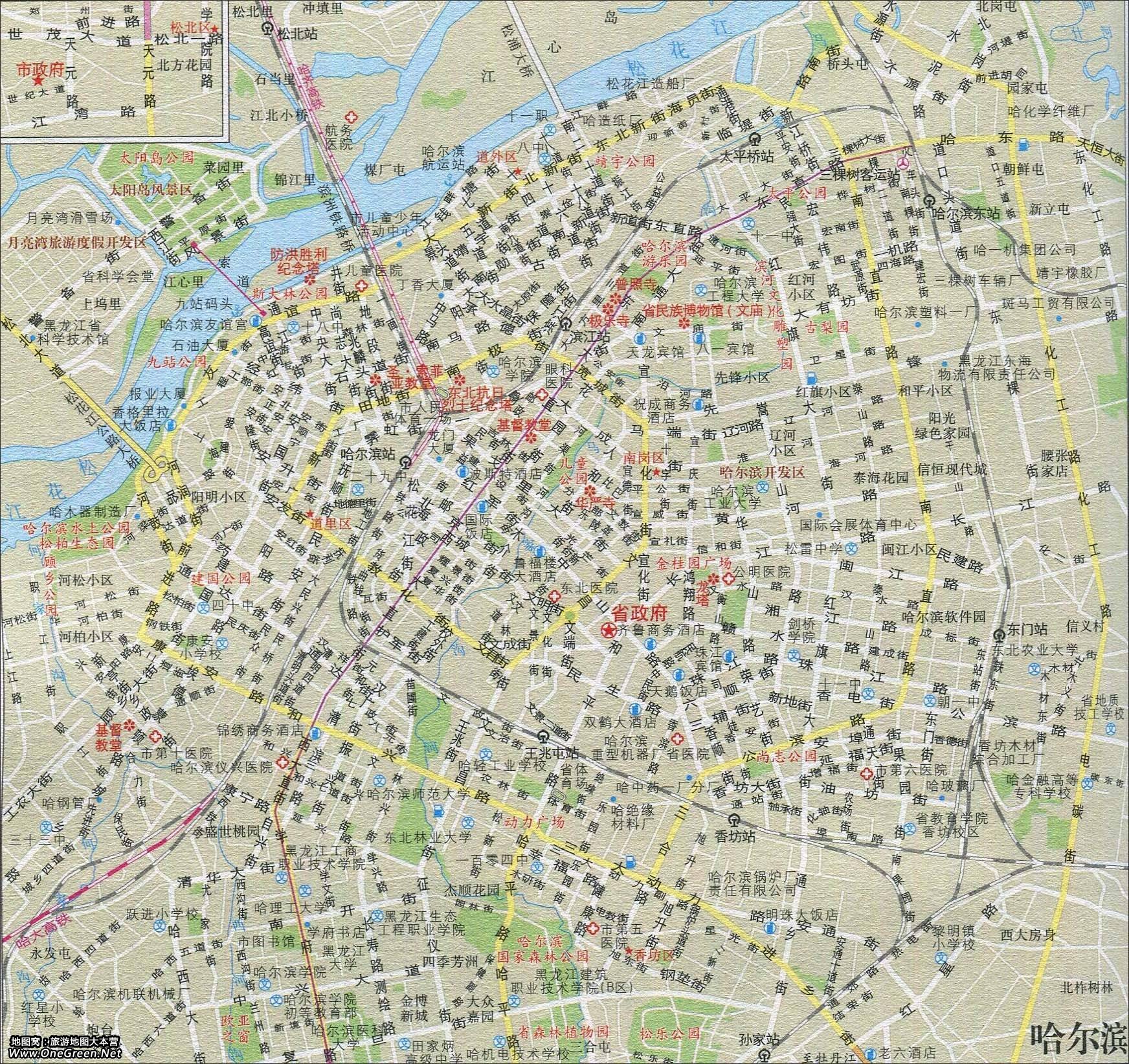 黑龙江哈尔滨导游地图: