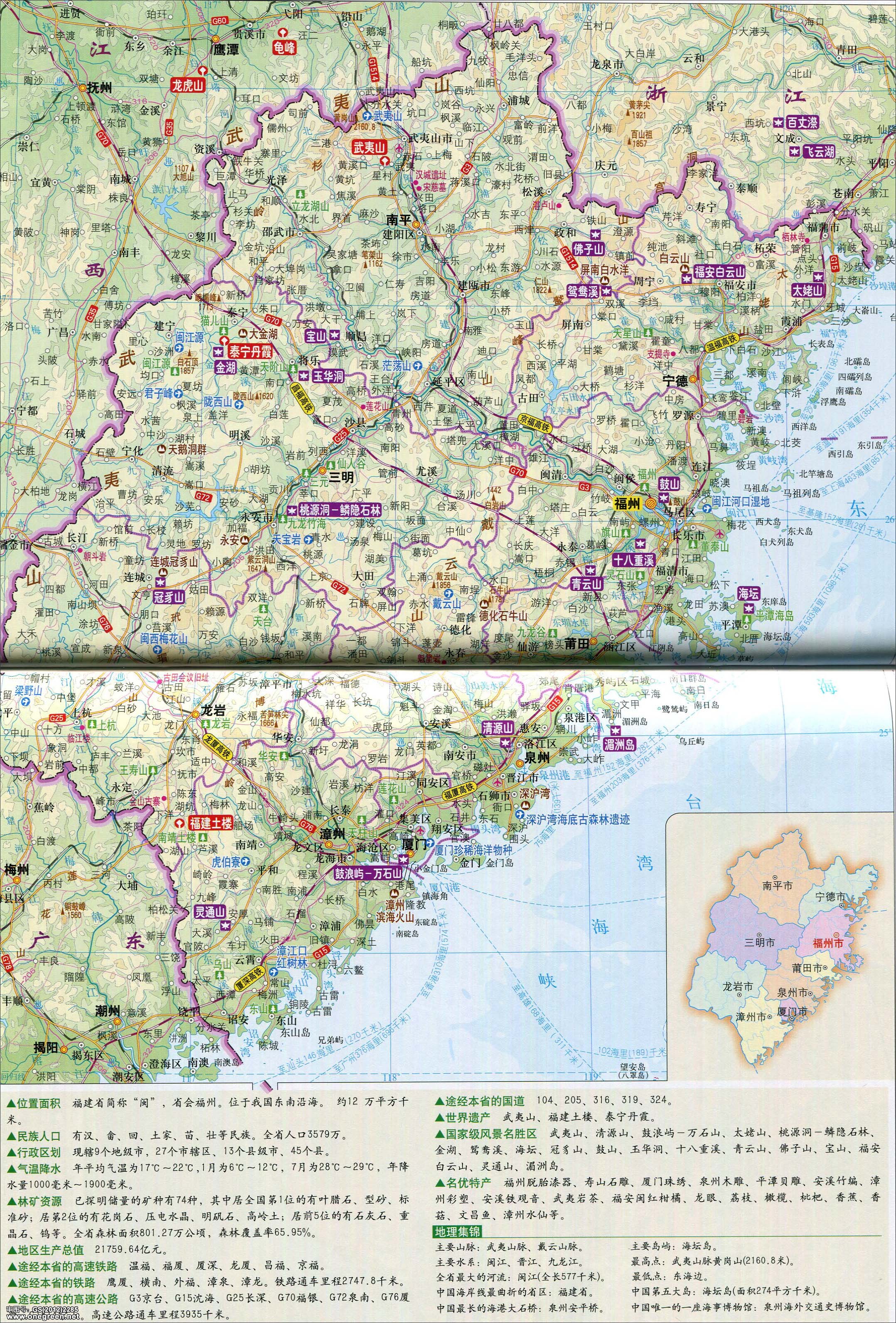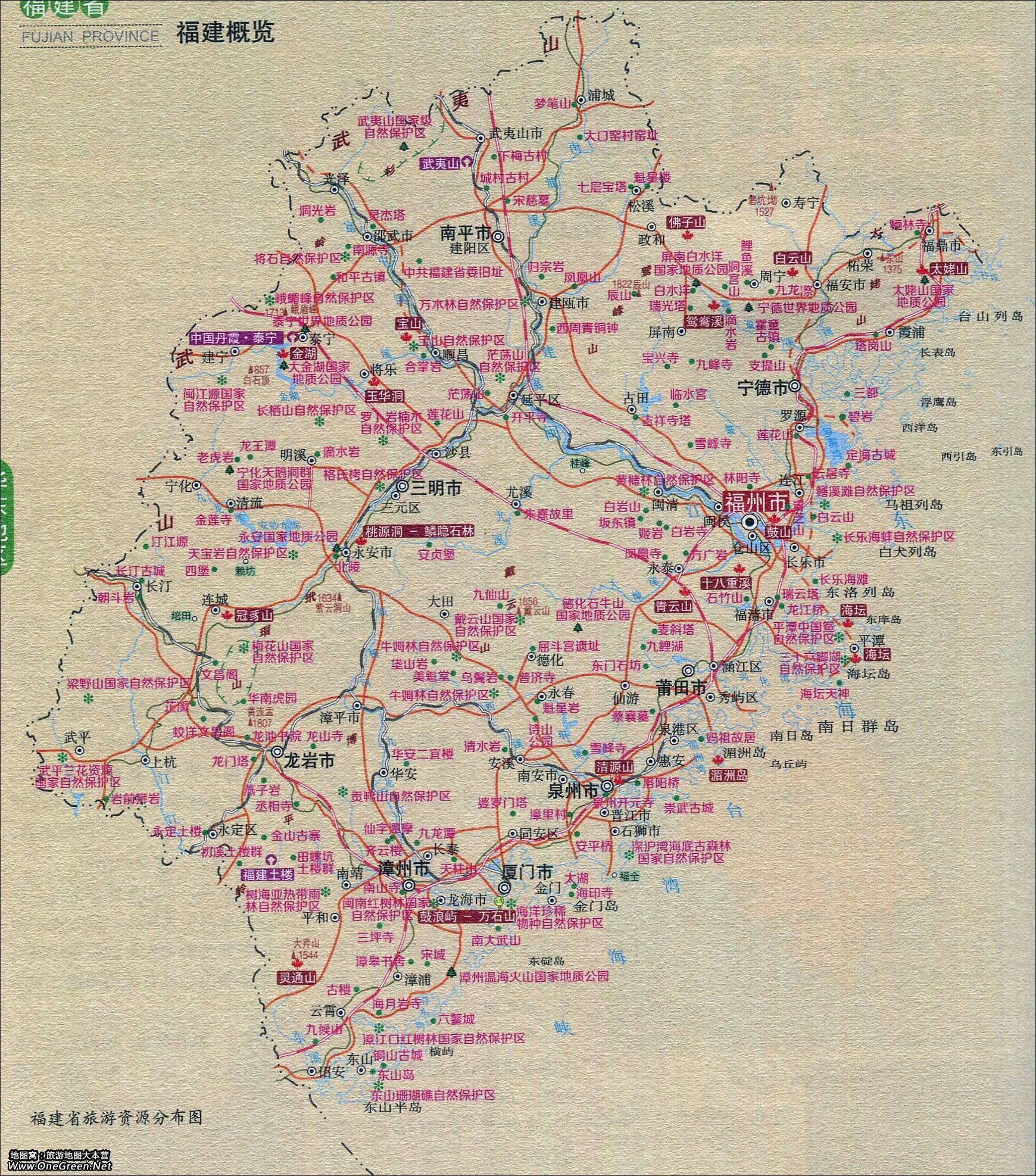 福建旅游资源分布图