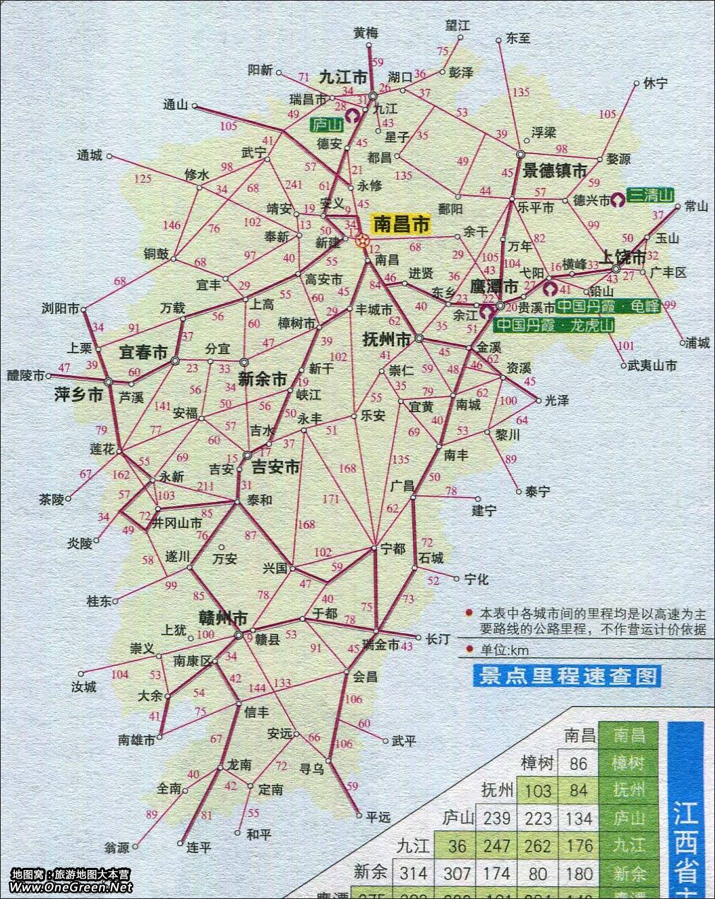 江西省景点里程速查图