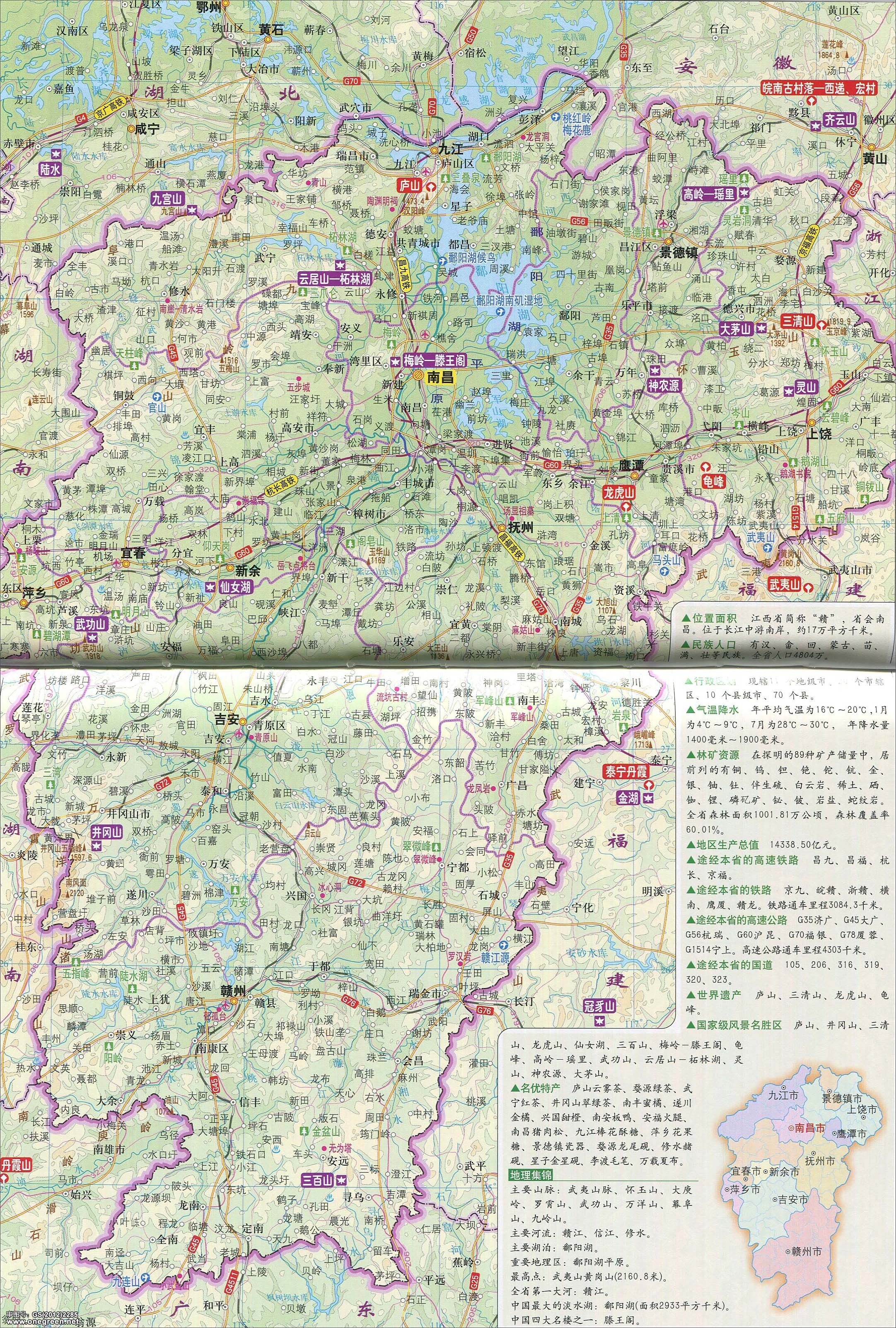 江西旅游资源分布图