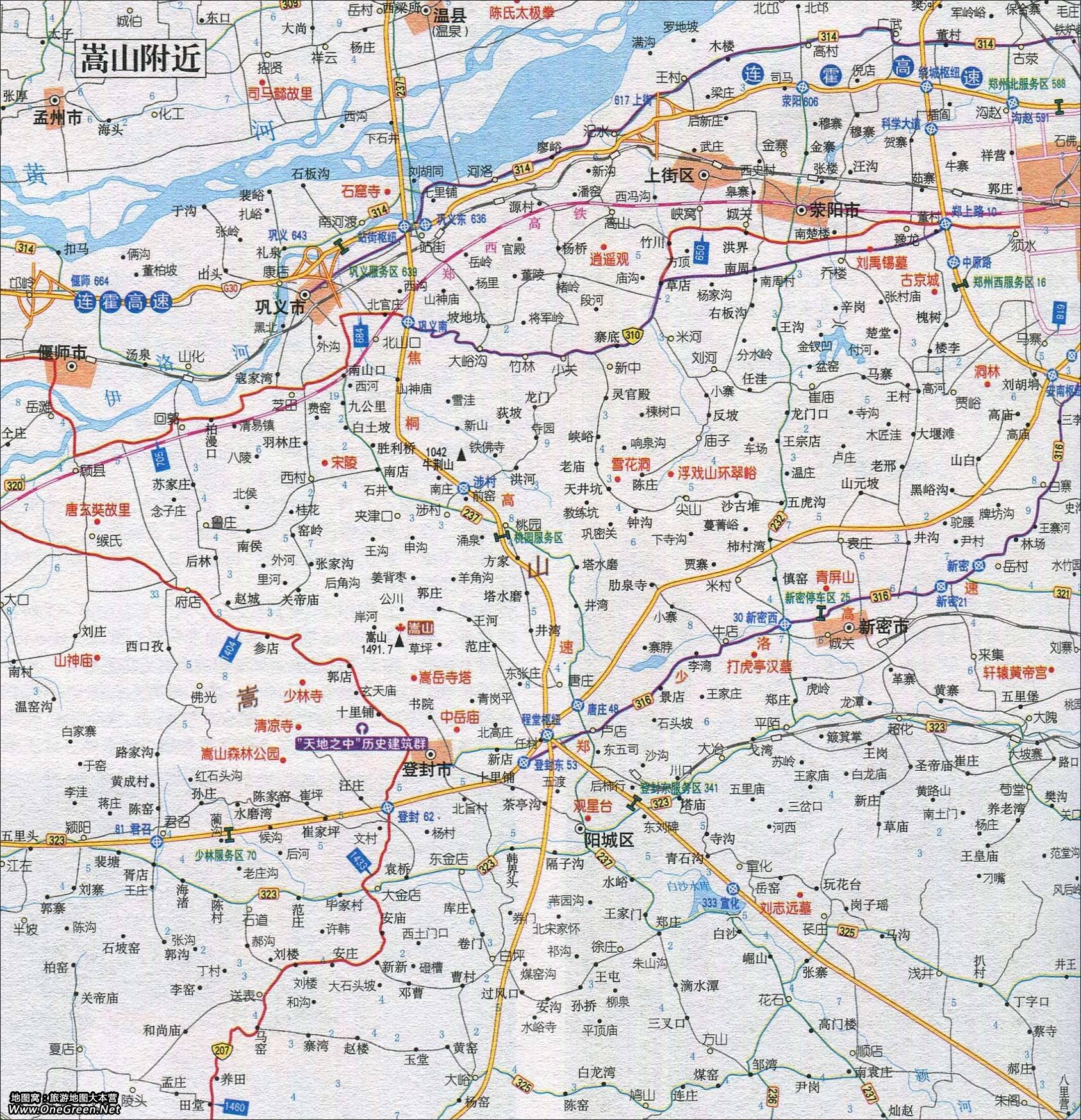 嵩山附近旅游交通地图