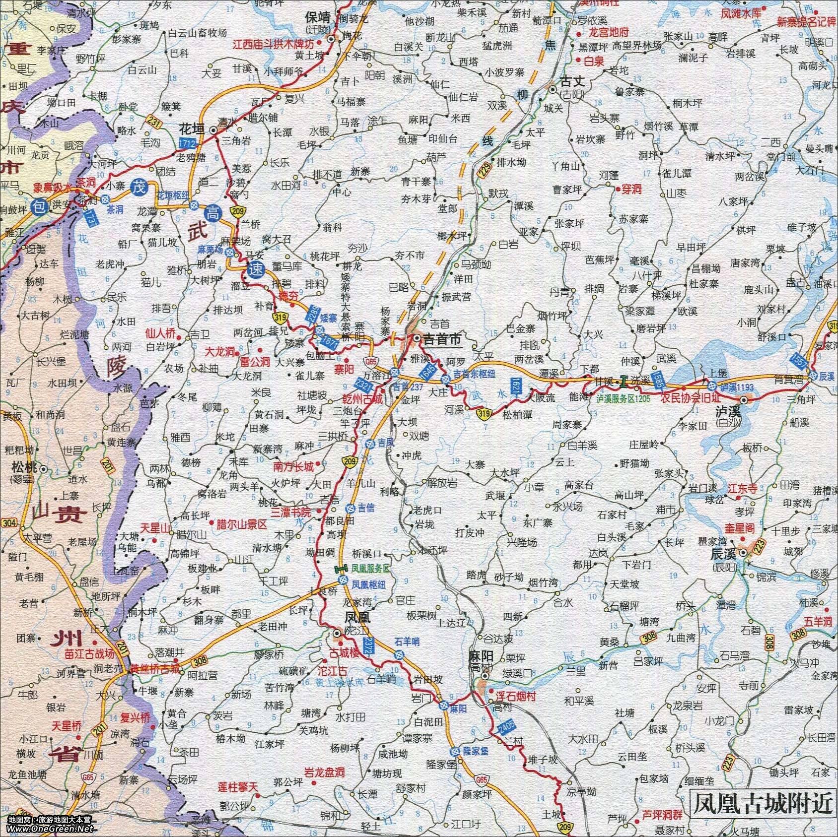 凤凰古城附近旅游交通地图