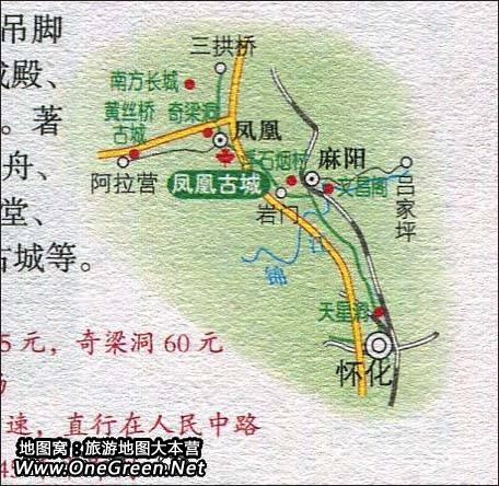 怀化至凤凰古城旅游路线图