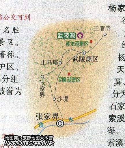 张家界至武陵源旅游路线图