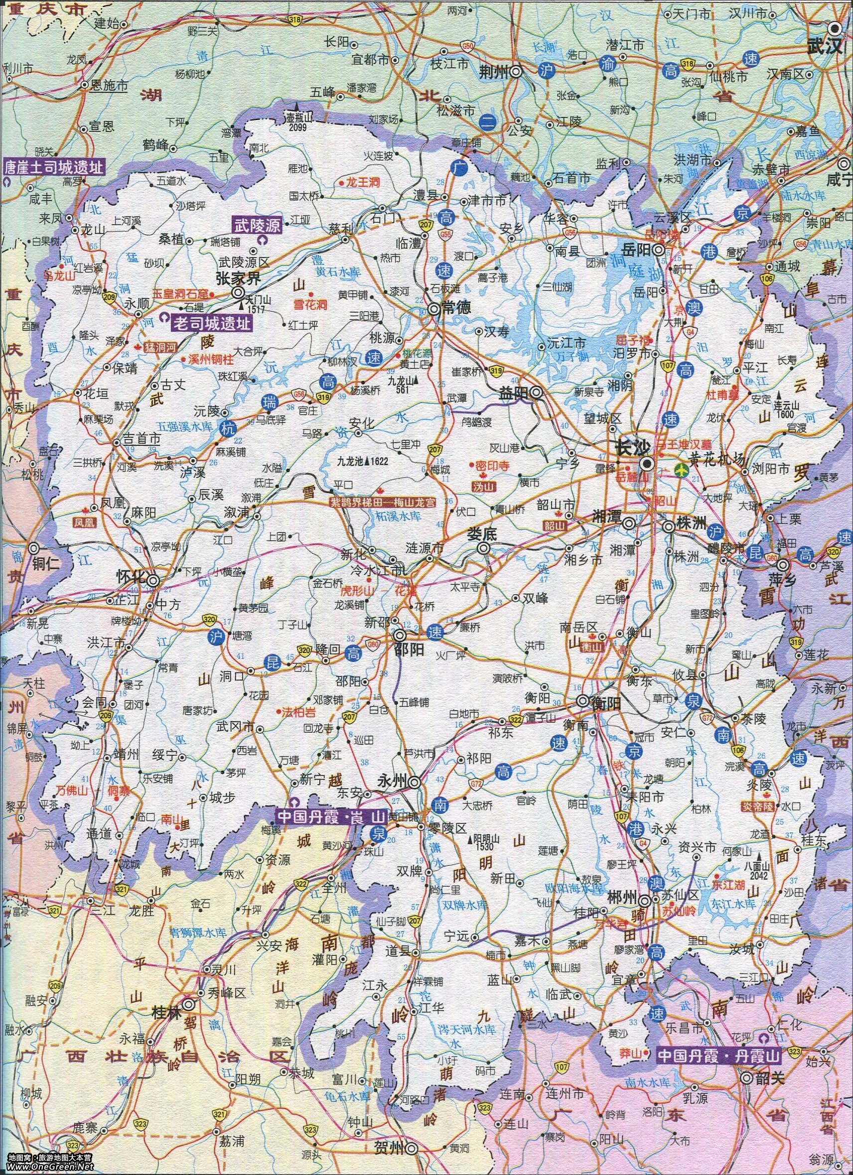湖南省旅游景点交通地图
