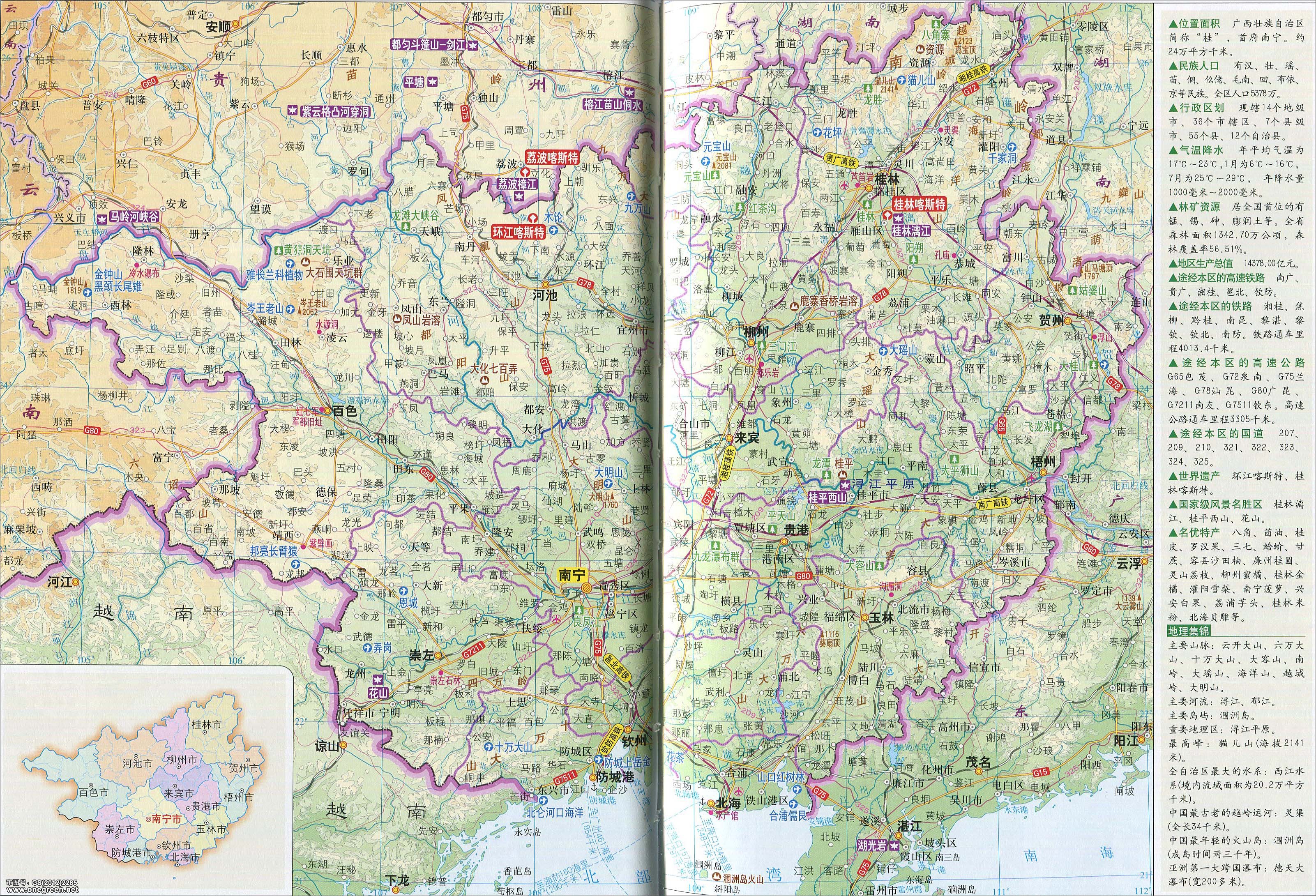 广西省旅游资源分布图