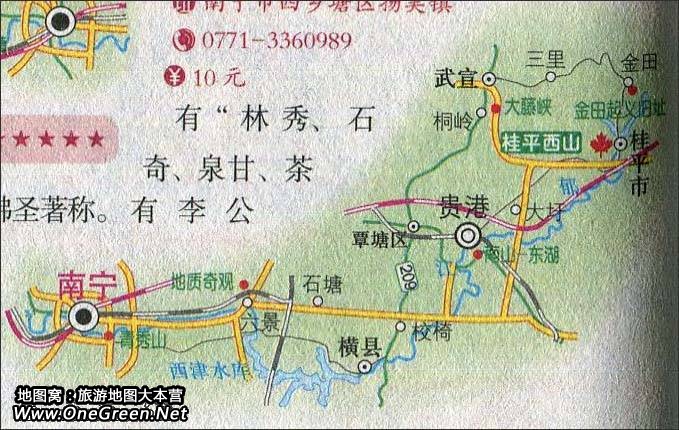 南宁至桂平市旅游路线图