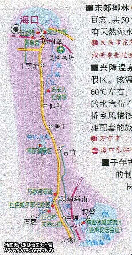 海口至博鳌旅游路线图