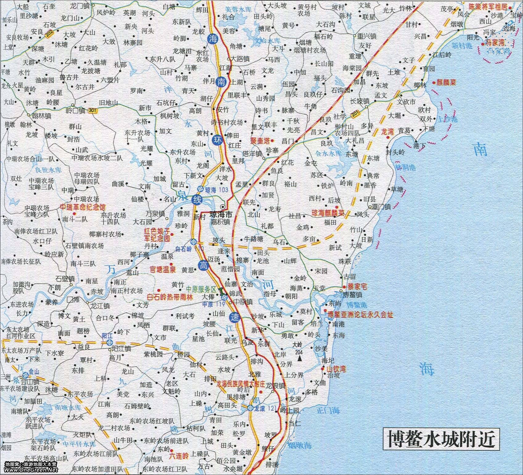 博鳌水城附近交通旅游地图