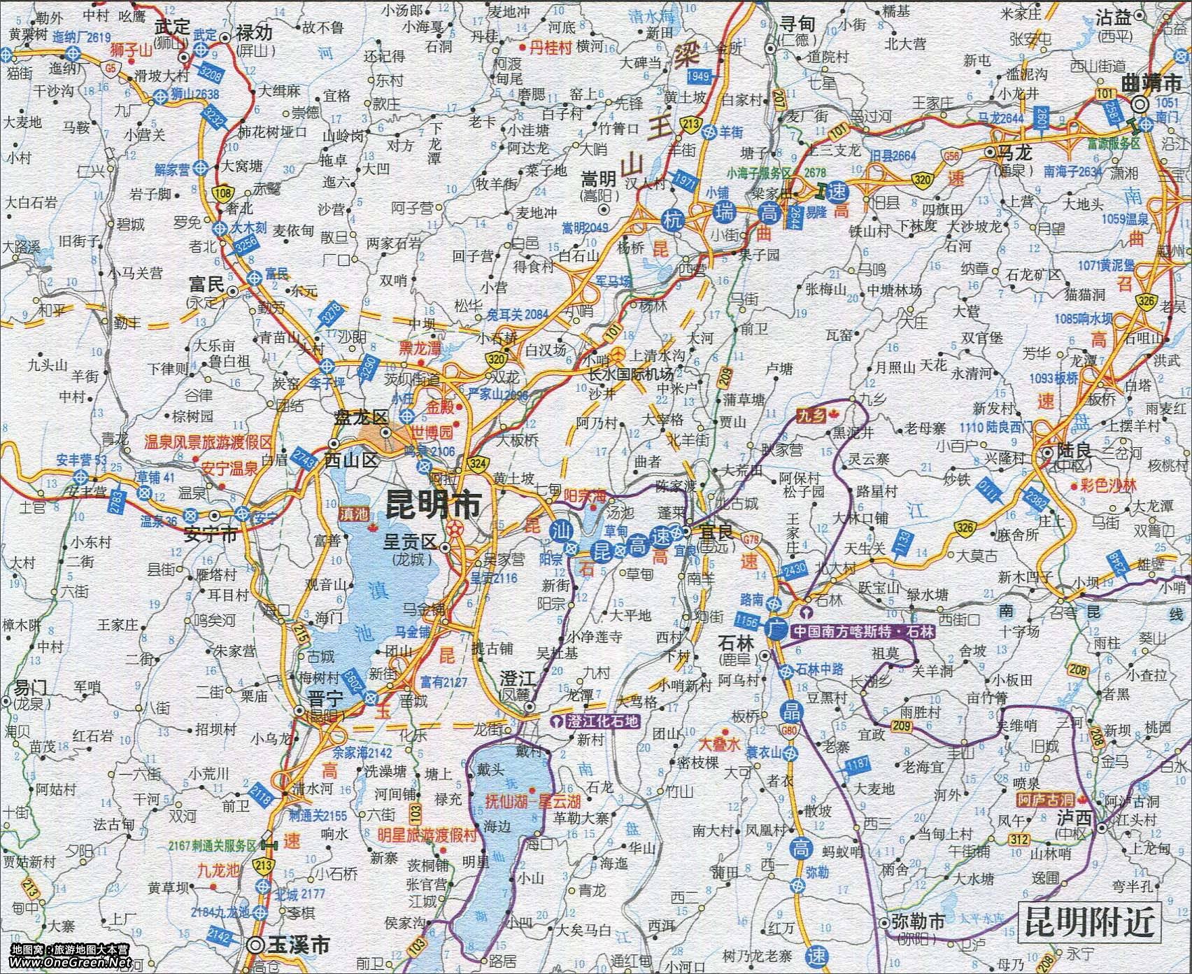 昆明附近旅游交通地图