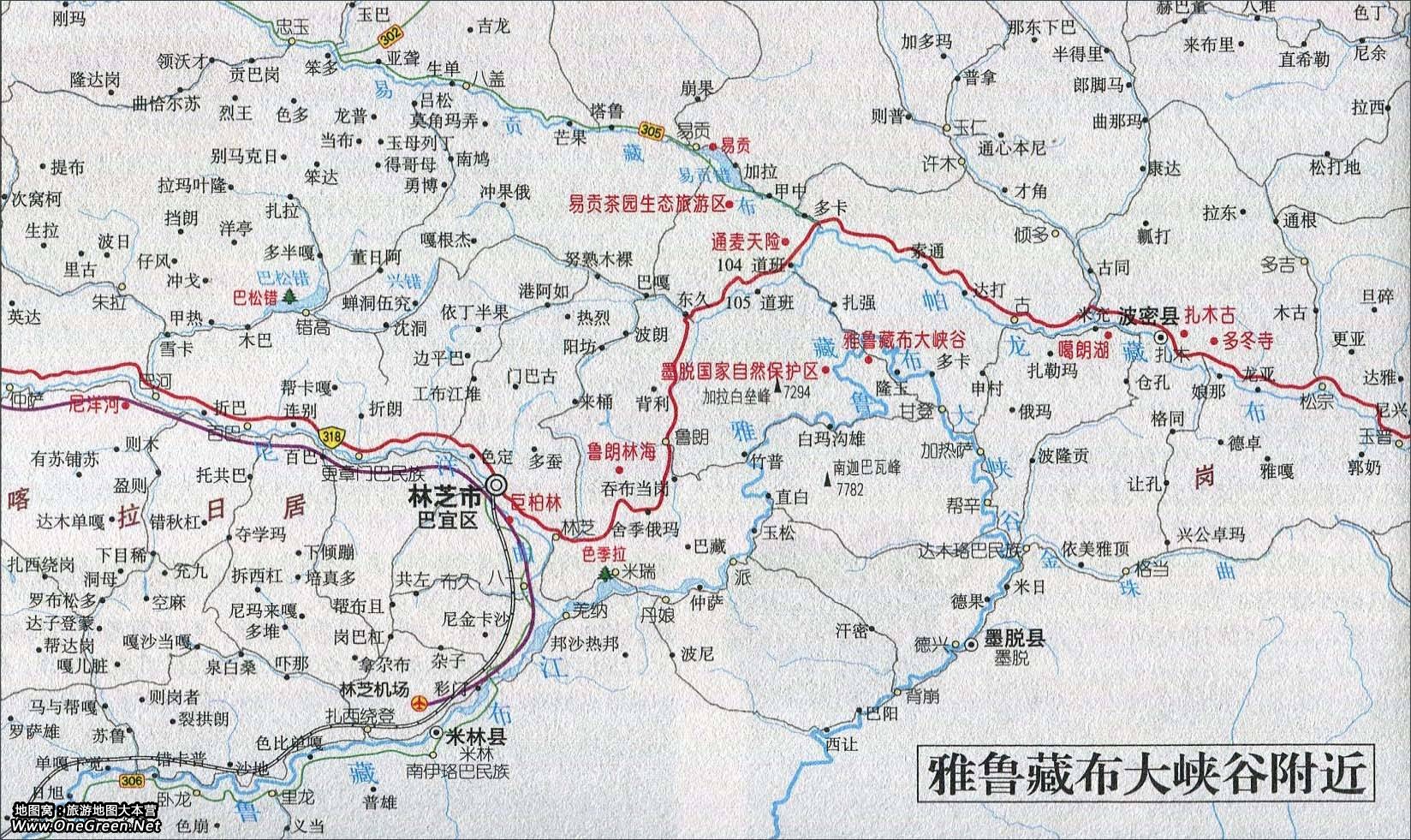 西藏雅鲁藏布大峡谷导游地图: