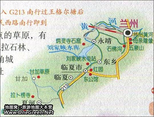 兰州至桑科草原旅游路线图