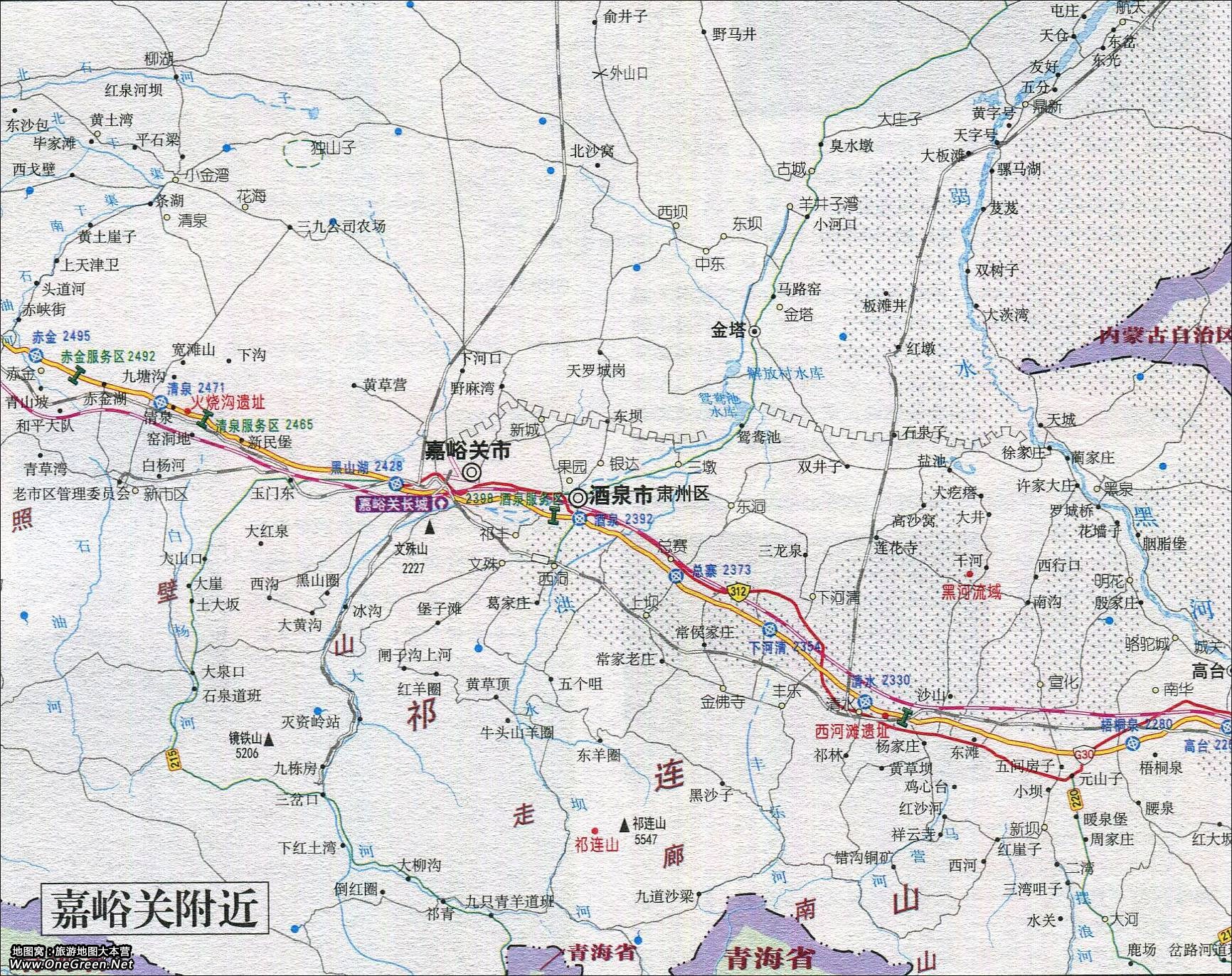 嘉峪关附近交通旅游地图