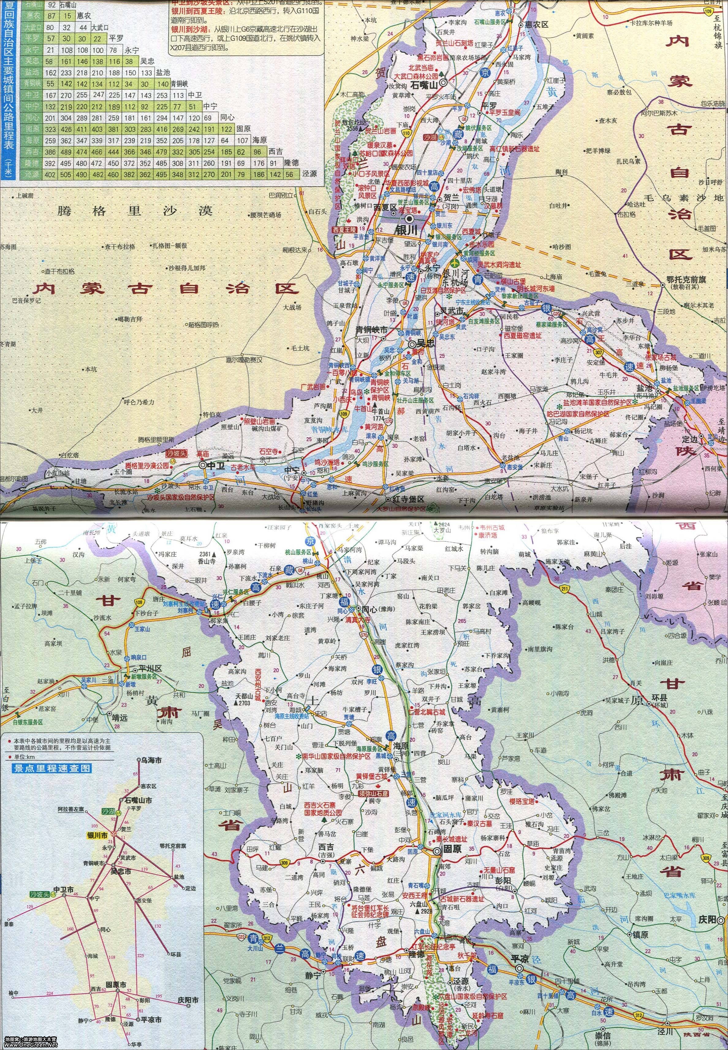 宁夏旅游景点交通地图