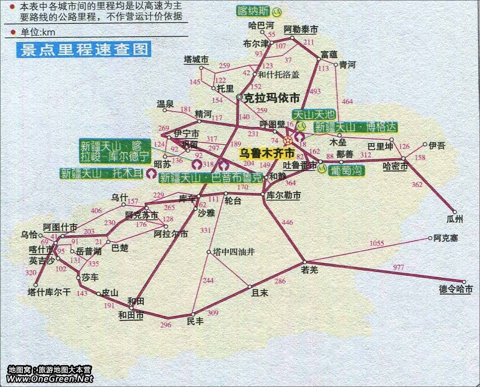 新疆景点里程速查图