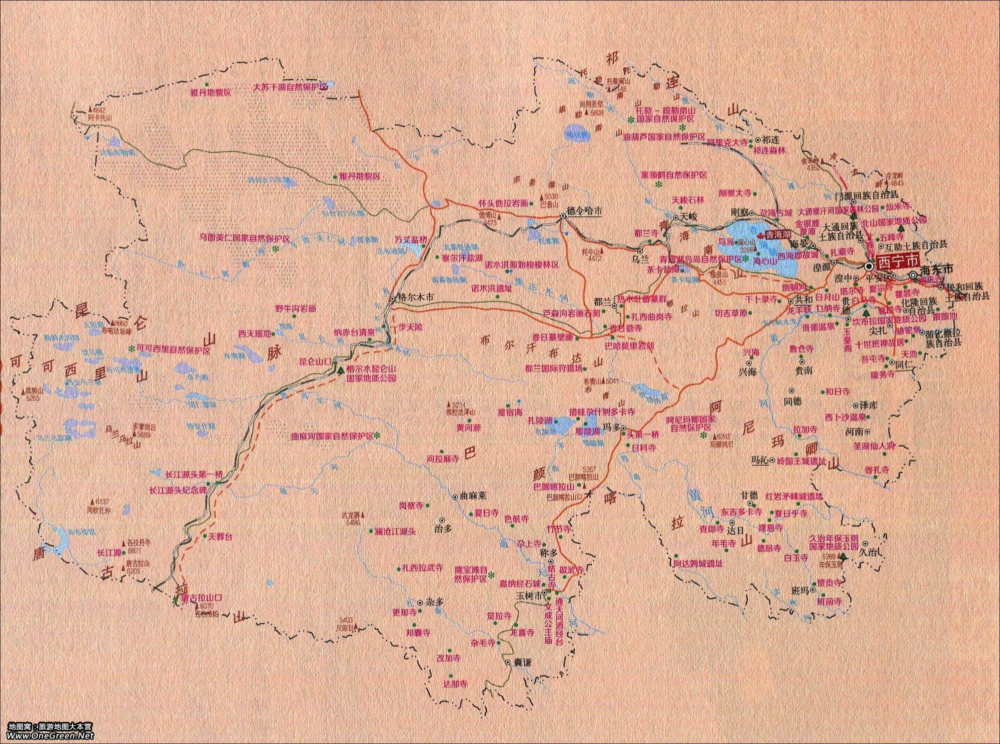 青海旅游景点导游图