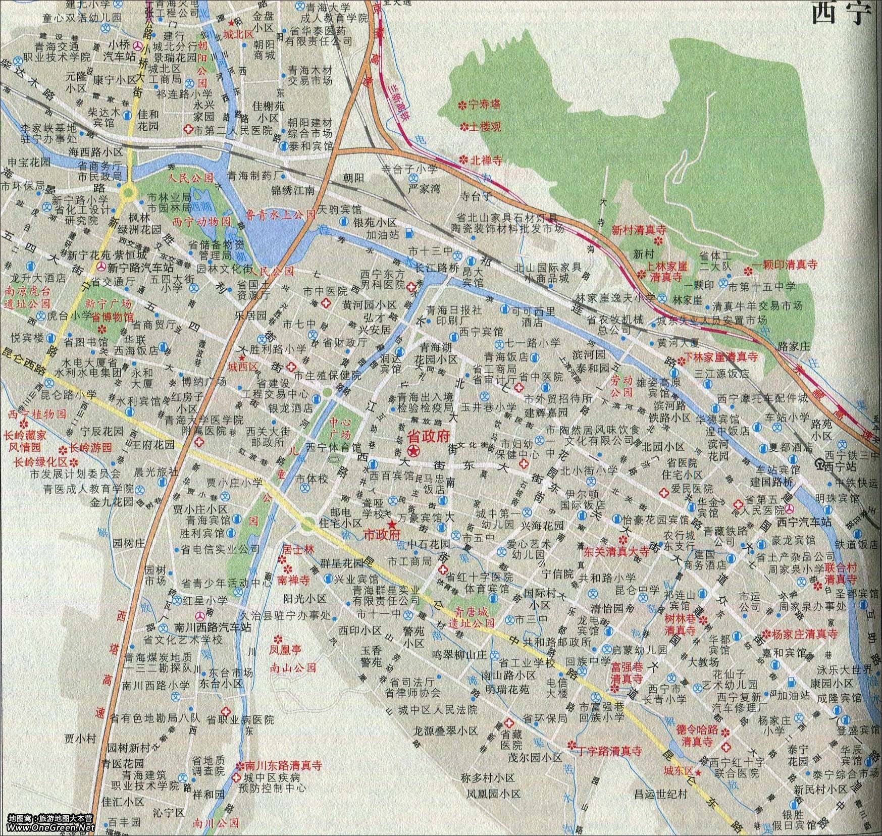 青海西宁导游地图: