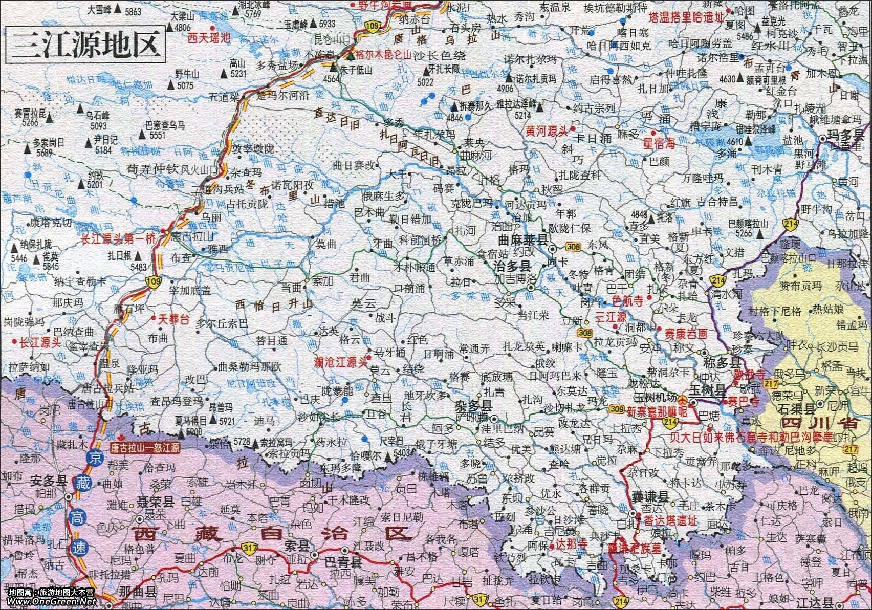 青海三江源导游地图: