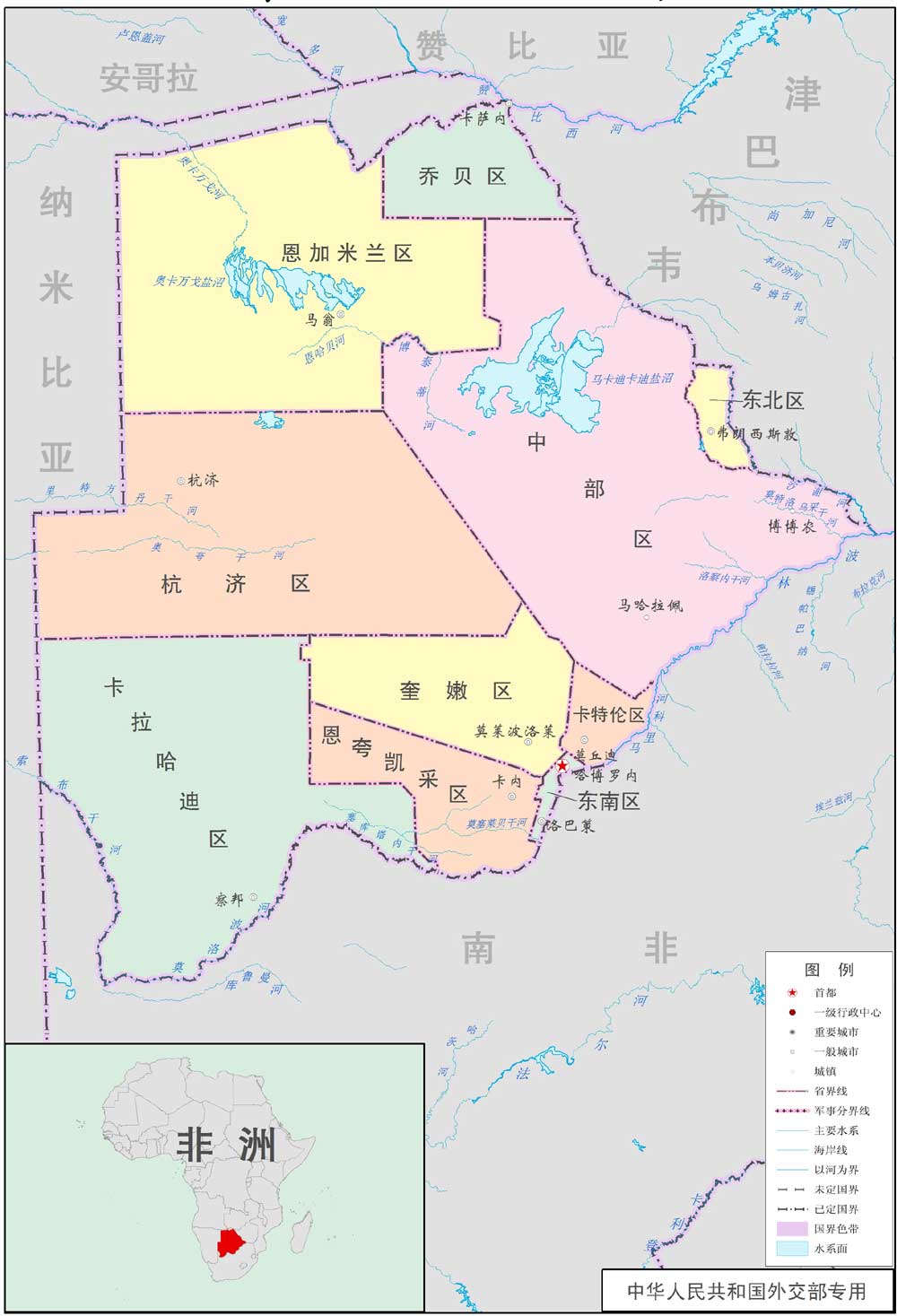 | 博茨瓦纳行政区划图 | 分类:博茨瓦纳 人气:(载入中...) 更新:2013/8/31 |