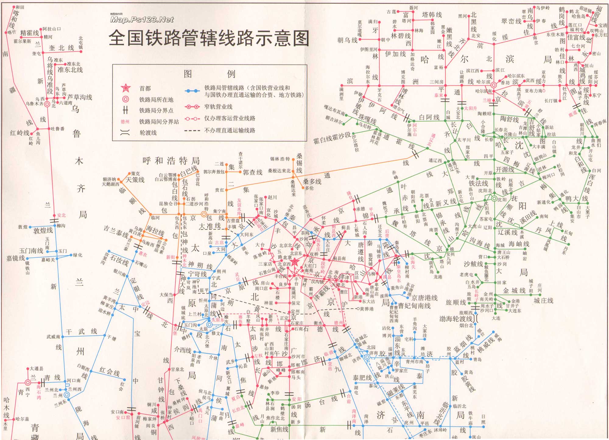 | 国内铁路管辖线路示意图 | onegreen.net | 分类:铁路线路图 中国交通 人气:(载入中...) 更新:2013/9/1 |