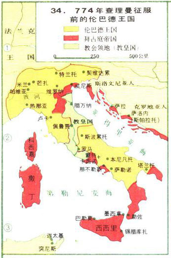 | 774年查理曼征服前的价伦巴德王国 | 分类:世界历史B 人气:(载入中...) 更新:2013/9/8 |
