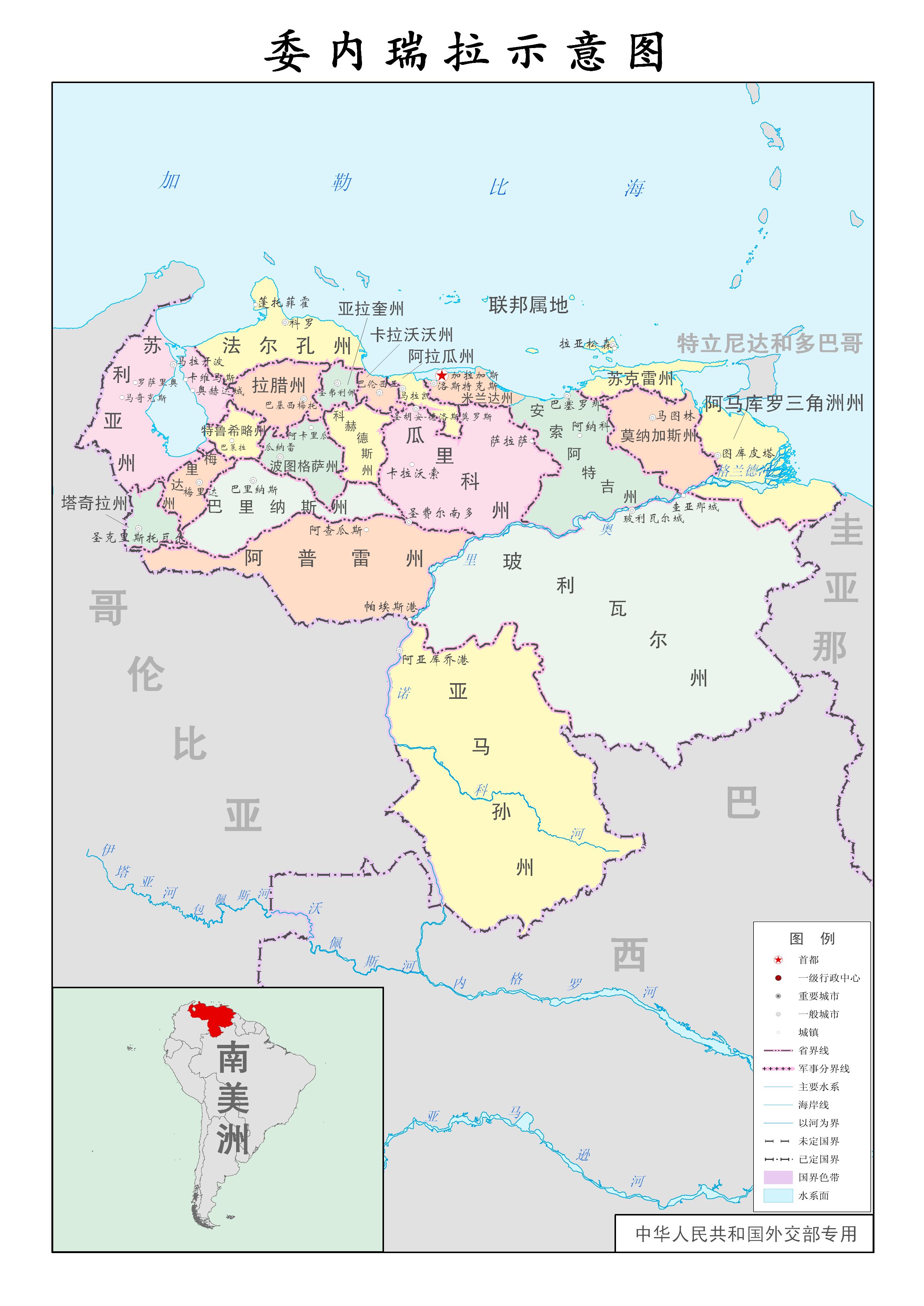 | 委内瑞拉行政示意图 | 分类:国家示意图 国家示意图 人气:(载入中...) 更新:2014/2/3 |