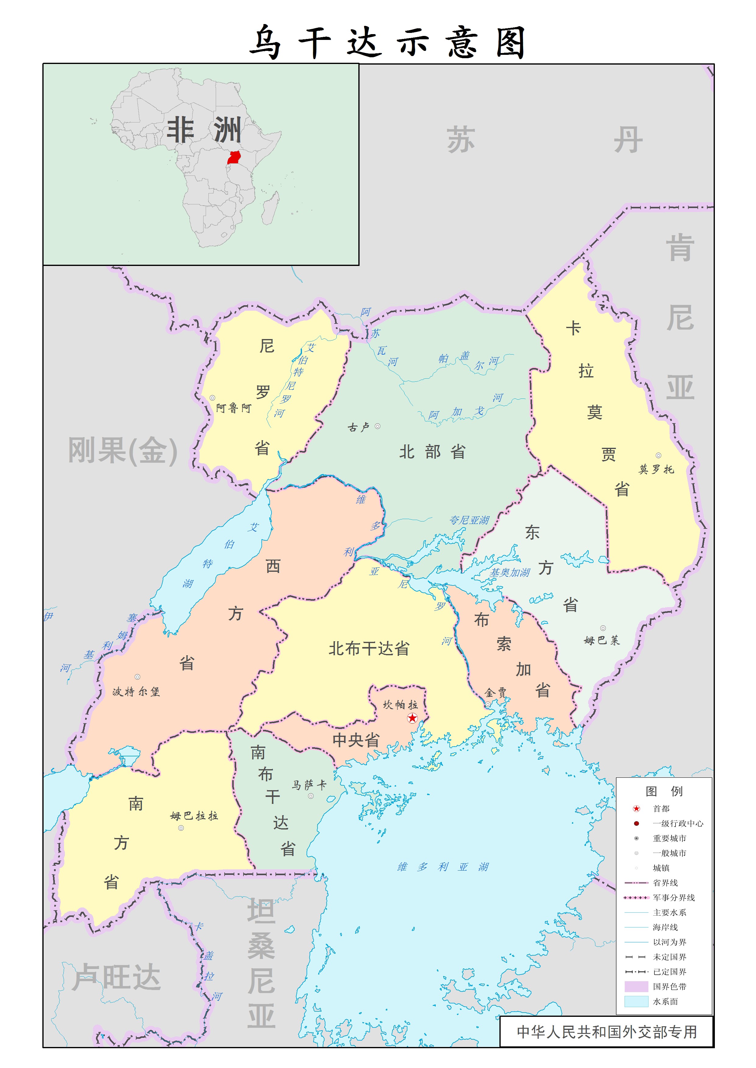 | 乌干达行政示意图 | 分类:国家示意图 国家示意图 人气:(载入中...) 更新:2014/2/8 |