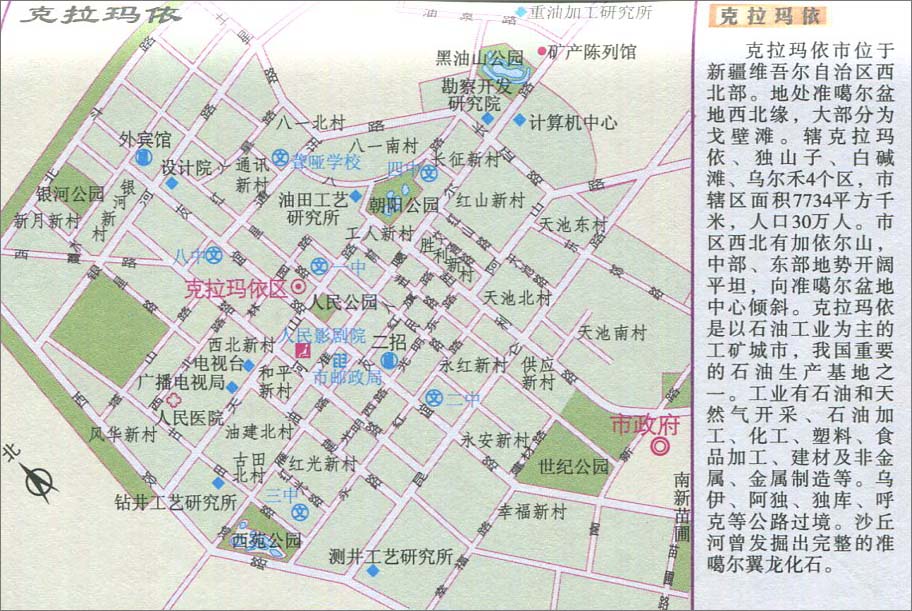 >> 克拉玛依城区旅游地图