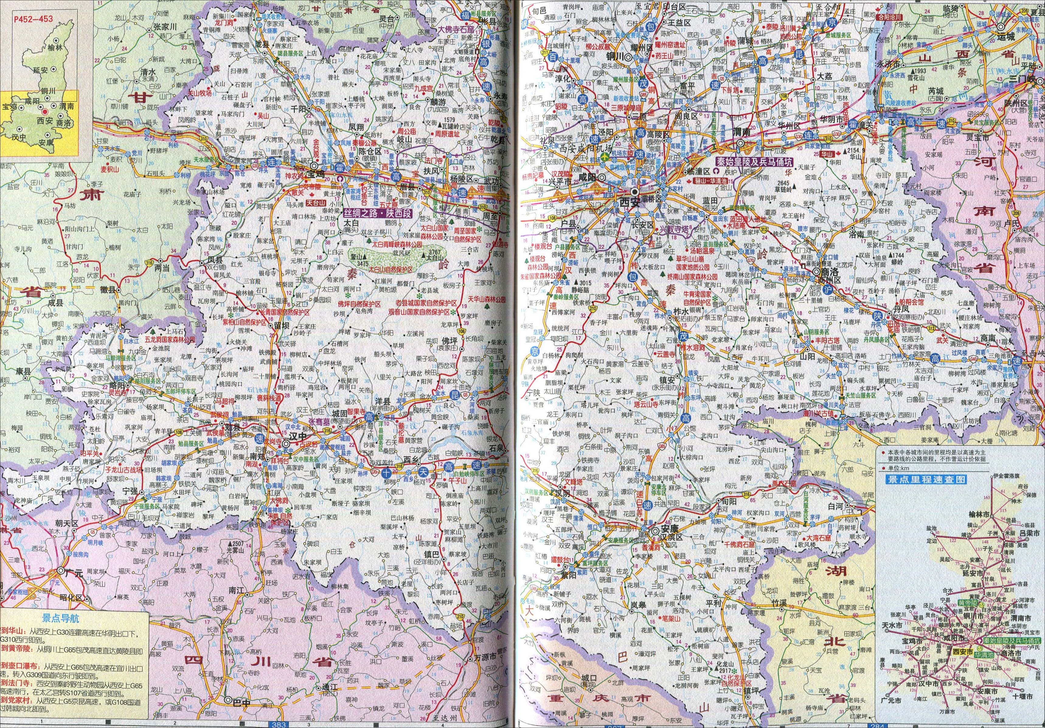 陕西省景点里程速查图