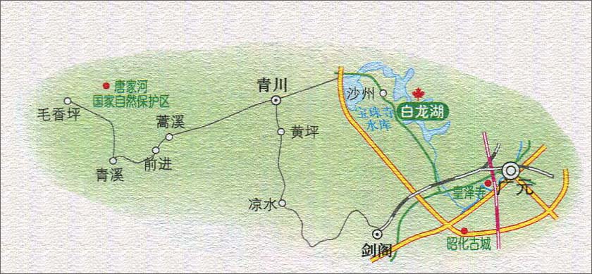 广元至毛香坪旅游路线图