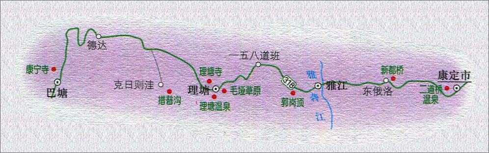 >> 康定市至康宁寺旅游路线图