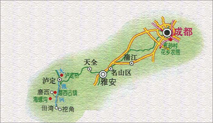>> 成都至泸定桥旅游路线图