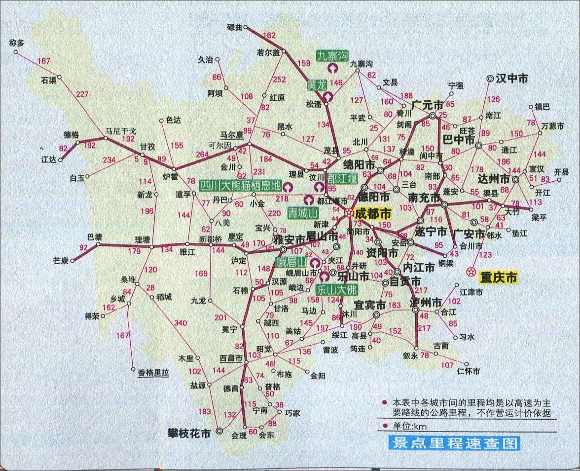>> 四川景点里程速查图