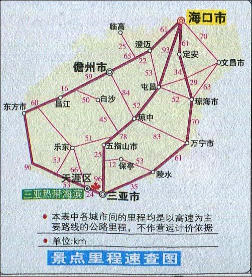 海南景点里程速查图
