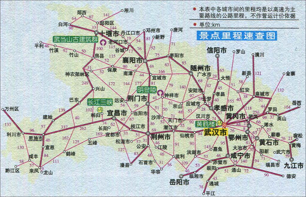 >> 湖北景点里程速查图