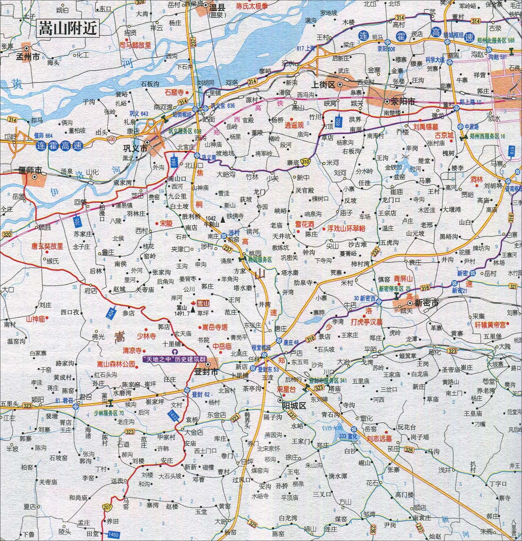 >> 嵩山附近旅游交通地图