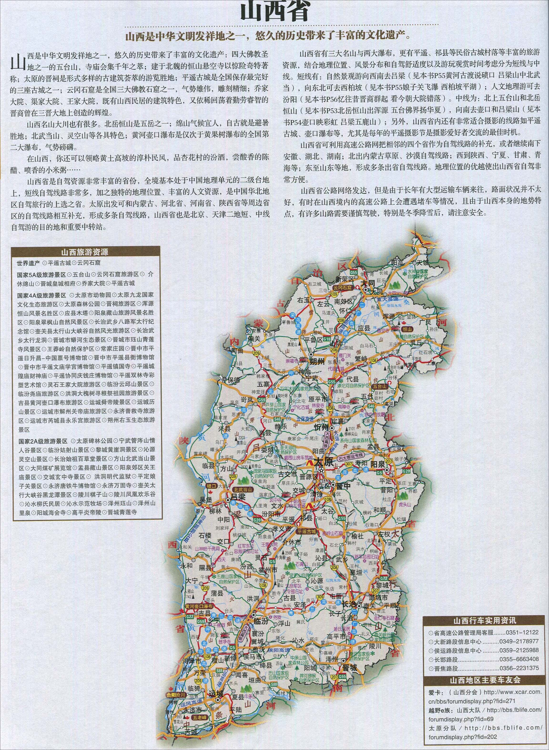 山西省旅游地图(必游景点)