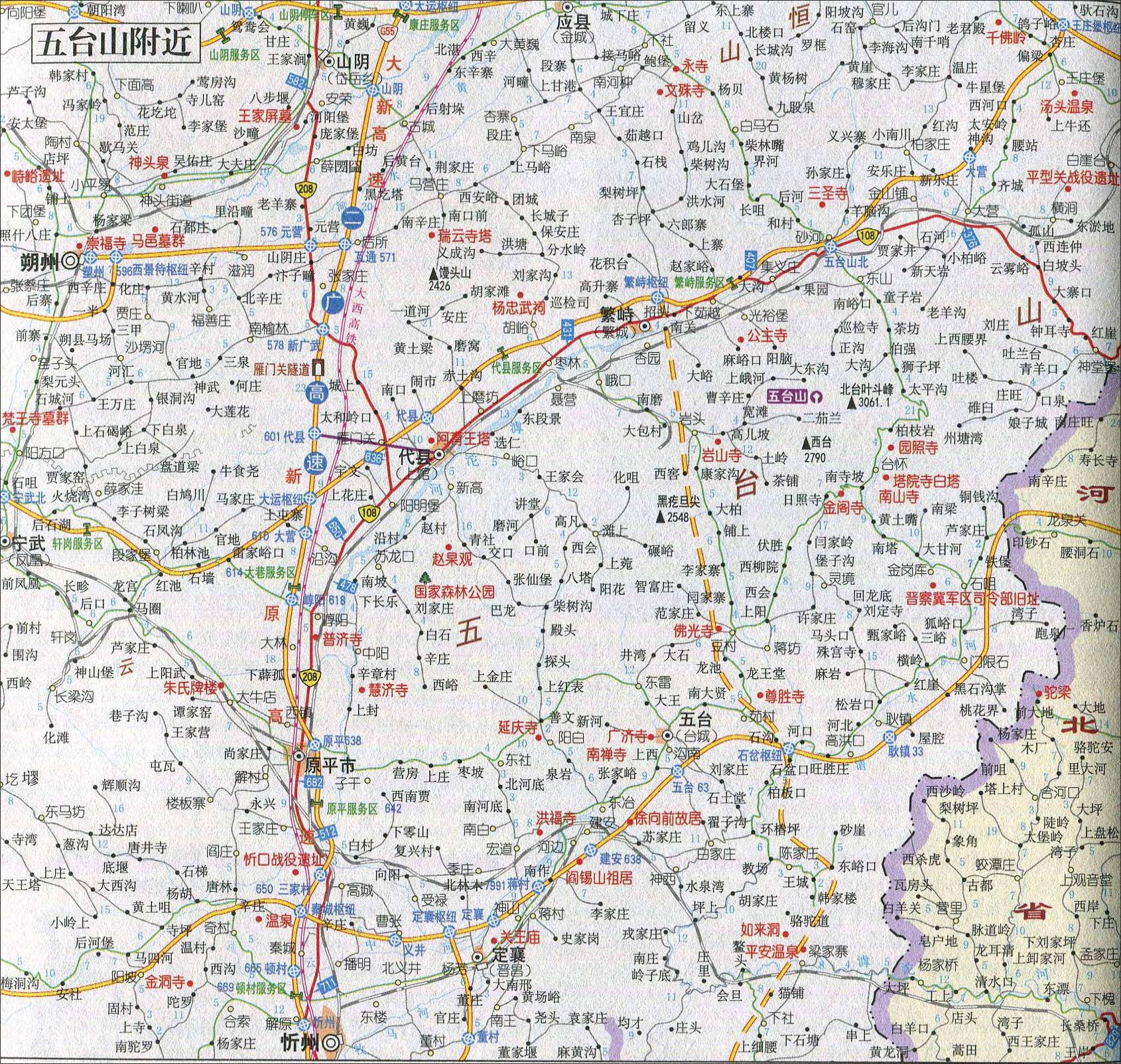 五台山附近旅游交通地图