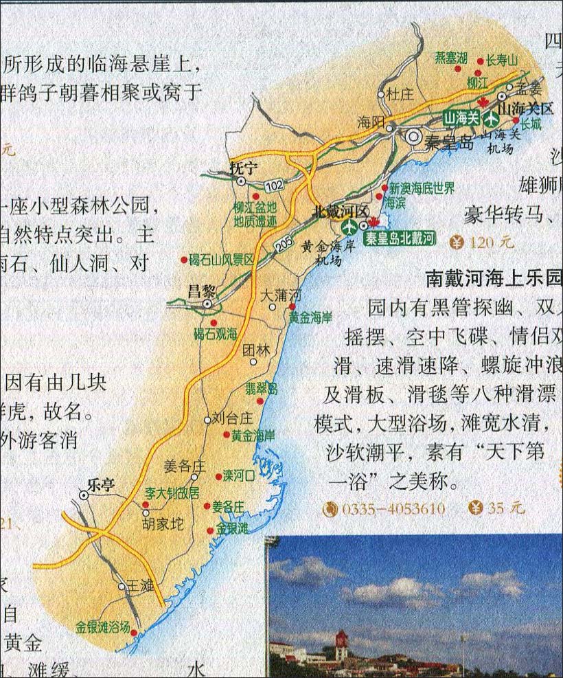 >> 山海关区至金银滩浴场旅游路线图