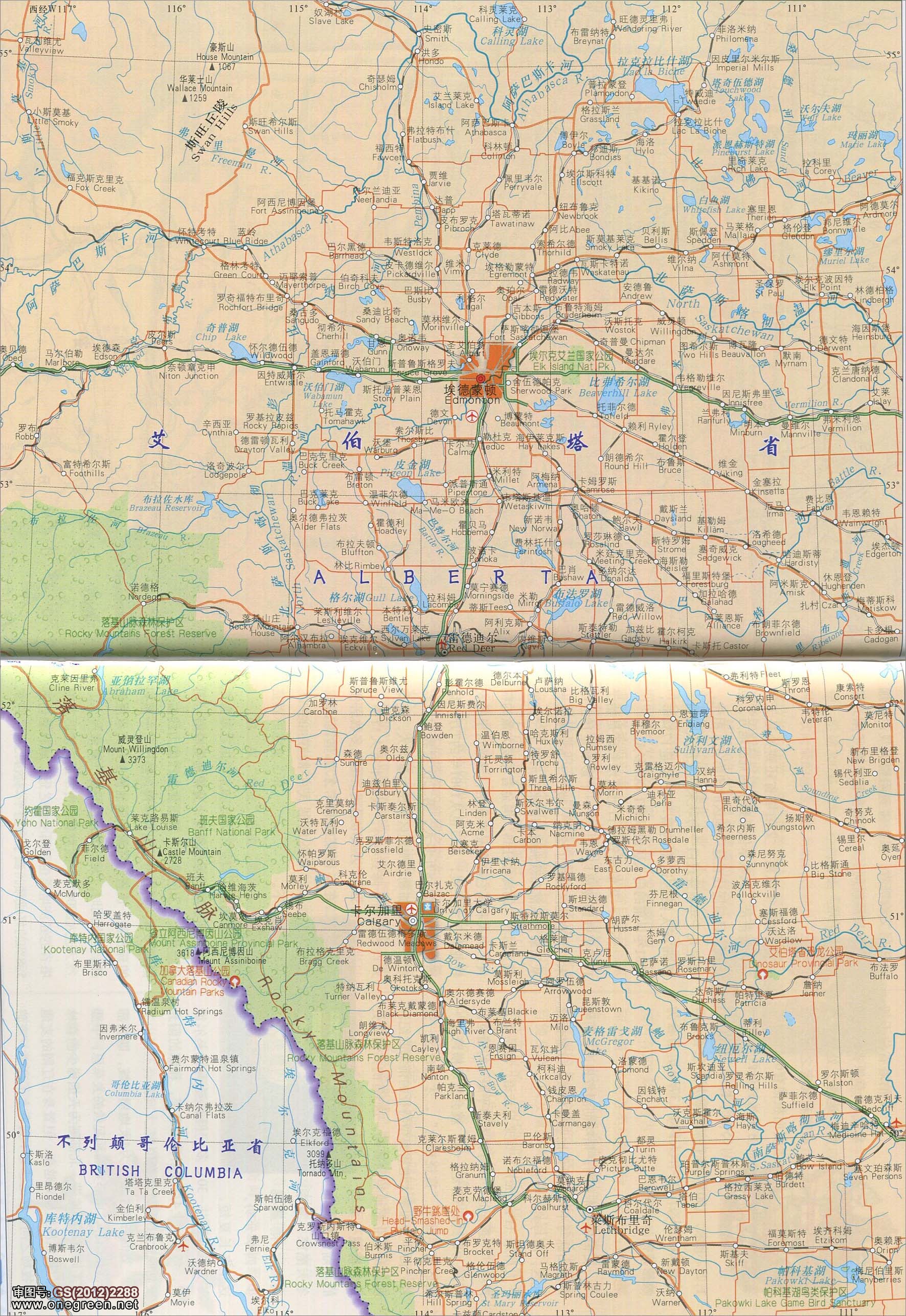 | 埃德蒙顿-卡尔加里附近地图 | 审图号:GS(2012)2288 | 分类:加拿大 人气:(载入中...) 更新:2017/11/12 |